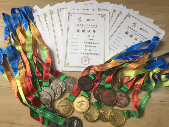 学校每年都组织学生参加上海市的各项阳光体育赛事,每年组织学生参加市级体育比赛的人次占到学校总人数的6%左右。在2018年度,参加上海市大学生武术联赛获得了武术拳操比赛高职组一等奖,功夫扇比赛高职组一等奖;参加上海市大学生田径“联盟杯”赛获得男子甲组100米、200米、400米、4×100米接力、4×400米接力共5项第一名,男子甲组团体总分第二名;参加上海城市业余联赛上海市高校健身操公开赛花球规定项目一等奖;参加上海市第十六届运动会高校组田径比赛获得男子甲组100米和4×100米接力2个项第一名,男子甲组100米、女子甲组4×100米接力和4×400米接力3个项目第二名;参加上海市阳光体育大联赛团体健身操比赛,高职组自编动作和高职组规定动作均获得一等奖;参加2018~2019年全国啦啦操联赛(上海闵行站)获得金牌和银牌各一项。在2019年度,参加上海市大学生武术联赛获得了武术拳操比赛高职组一等奖,功夫扇比赛高职组三等奖;参加上海市大学生田径“联盟杯”赛获得男子甲组100米、200米和女子甲组跳远共3项第一名,获得男子甲组100米、4×100米接力、跳远和女子甲组4×100米接力共4项第二名;参加上海市学生阳光体育大联赛团体健身操比赛,规定动作一等奖;参加上海市学生阳光体育大联赛篮球三对三比赛,获得高职B组一等奖;参加上海市大学生篮球联赛,获得女子高职组冠军和男子高职组亚军;参加2019-2020年全国啦啦操联赛(上海闵行站),获得花球示范套路、爵士示范套路和街舞自选动作共3项第一名。